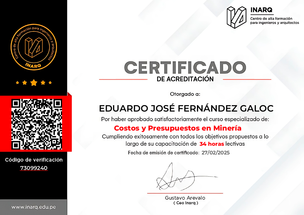 Nuestra certificación en Costos y Presupuestos en Minería dota de herramientas financieras para la elaboración de un presupuesto anual en empresas del sector minero. Así como de desarrollar una visión global del desempeño económico financiero de una empresa minera en un contexto internacional comprendiendo la estrecha interrelación entre los costos y los procesos para la creación de valor. Nuestra metodología teórico-práctica busca brindarle herramientas de aplicación inmediata a los profesionales para que puedan desarrollar un pensamiento analítico económico-financiero orientado a la creación de valor en una empresa minera.